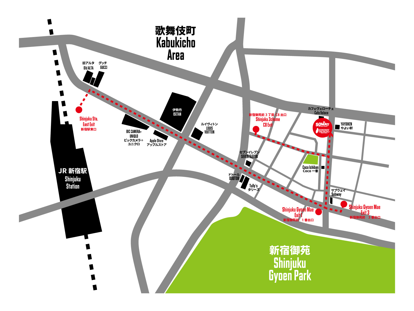 東京都新宿区新宿2-15-24ヒカリビル1F「新宿御苑前」4分、「新宿三丁目」5分